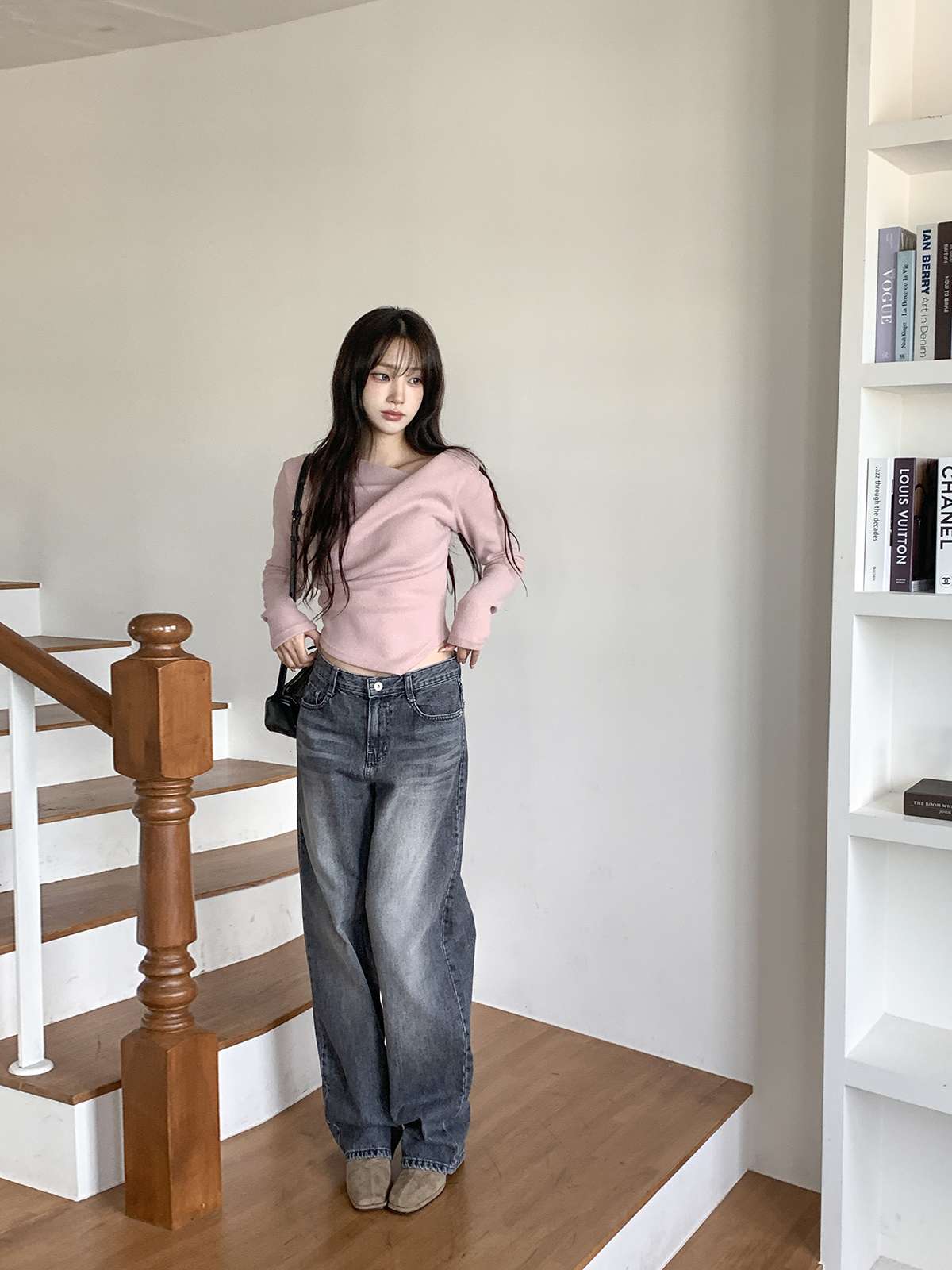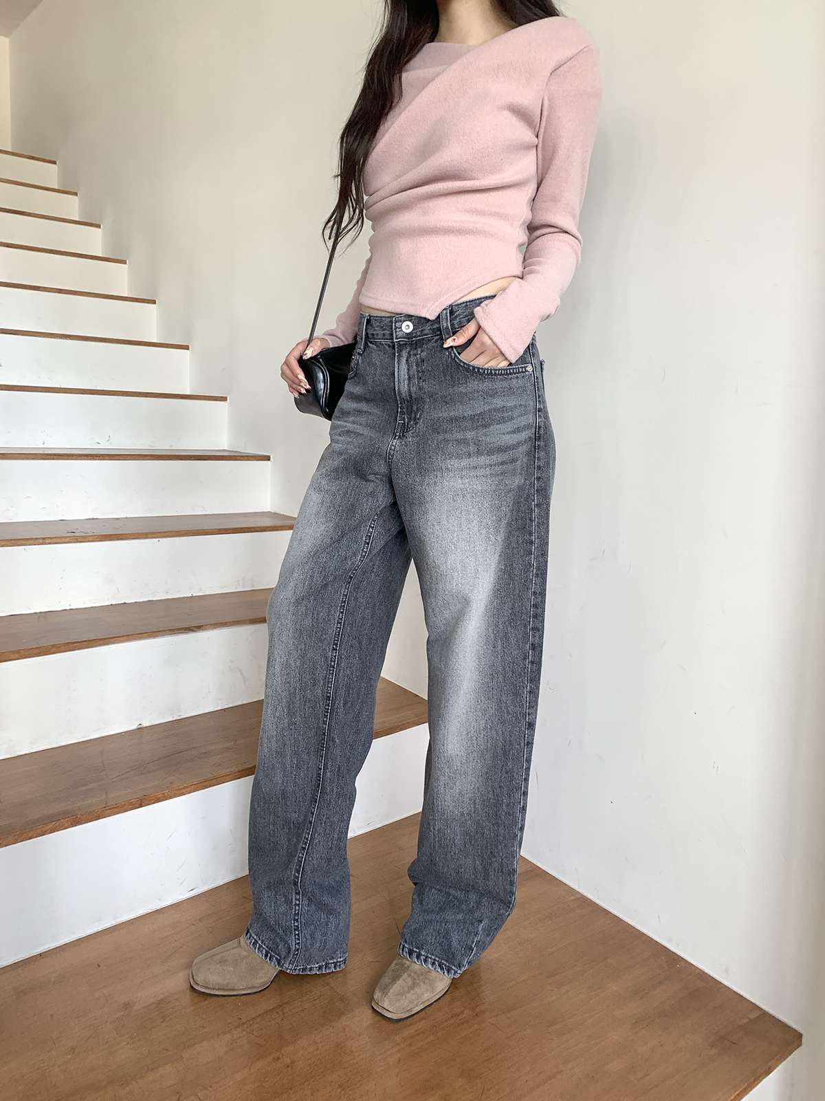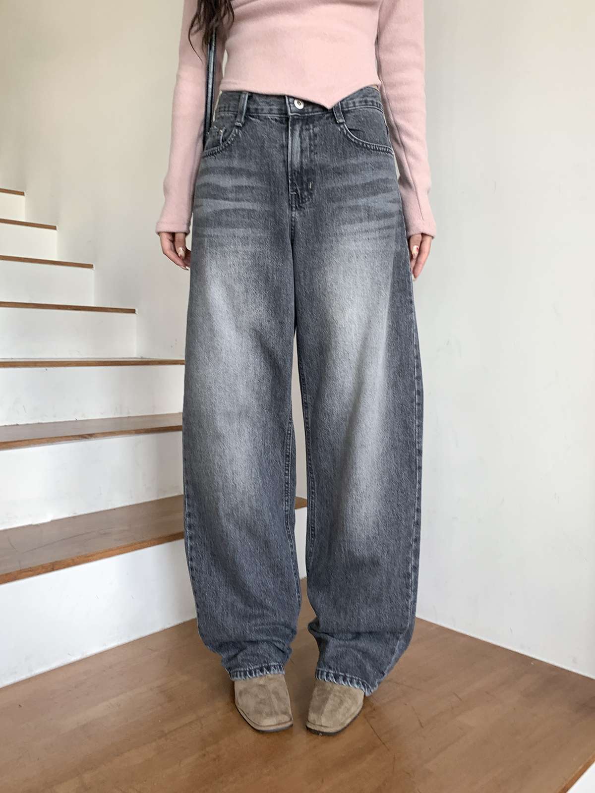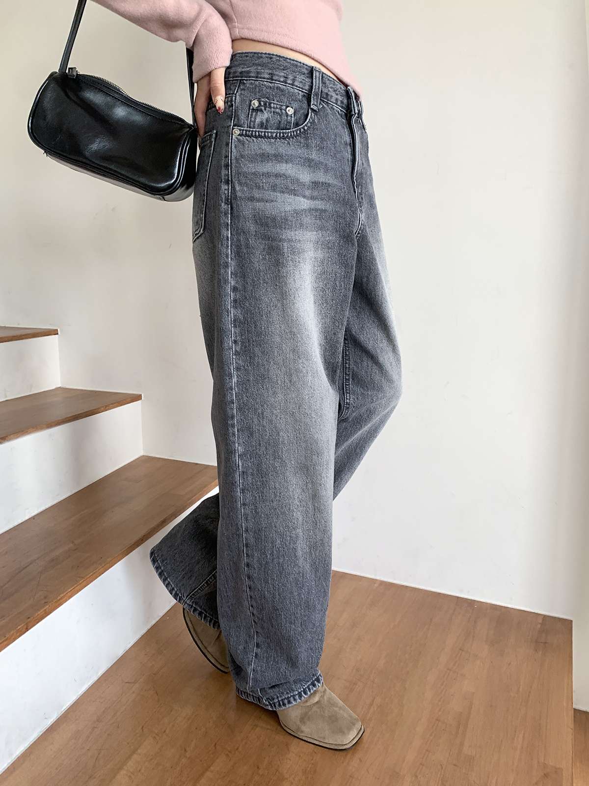 사계절 착용 가능한 은은한 워싱이 포인트인 와이드 데님 팬츠