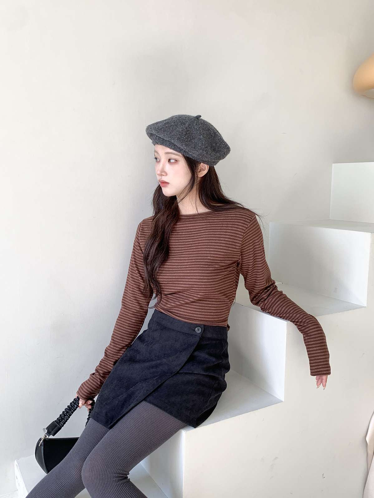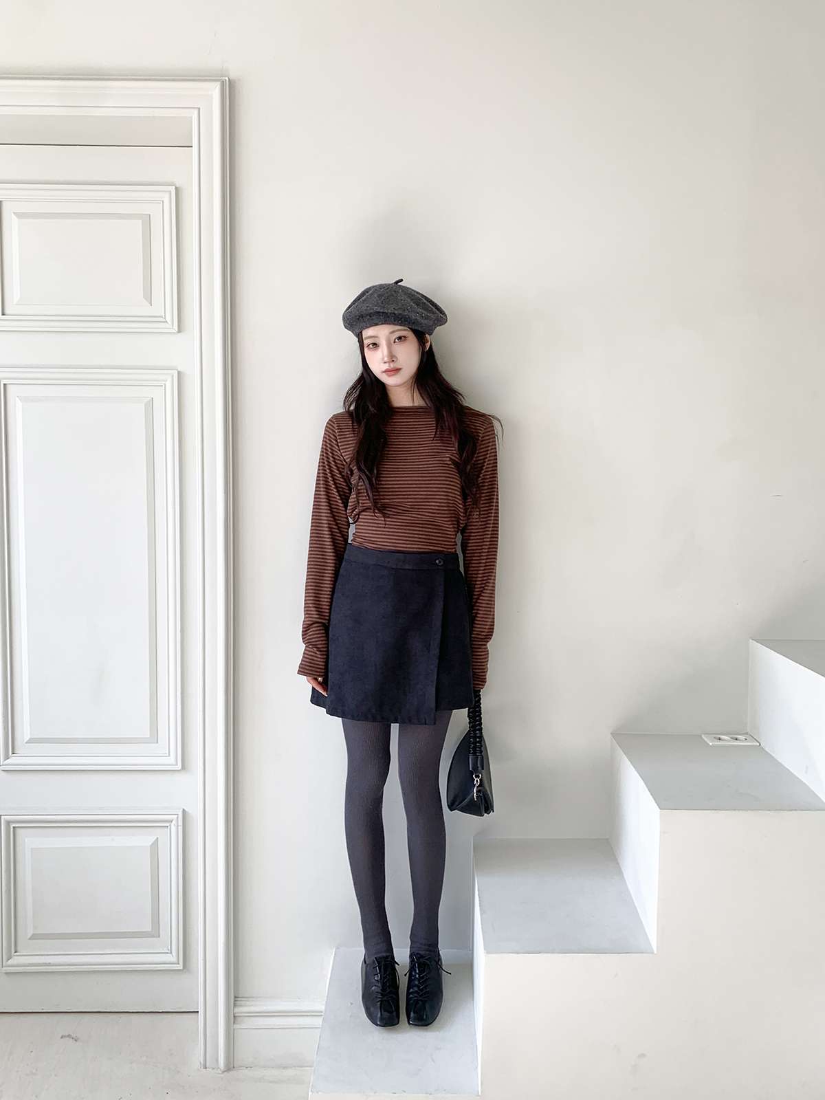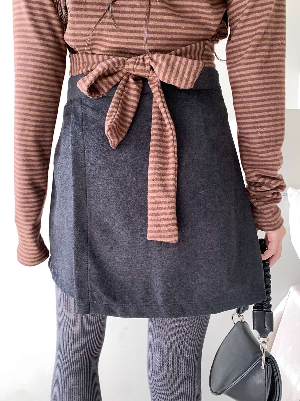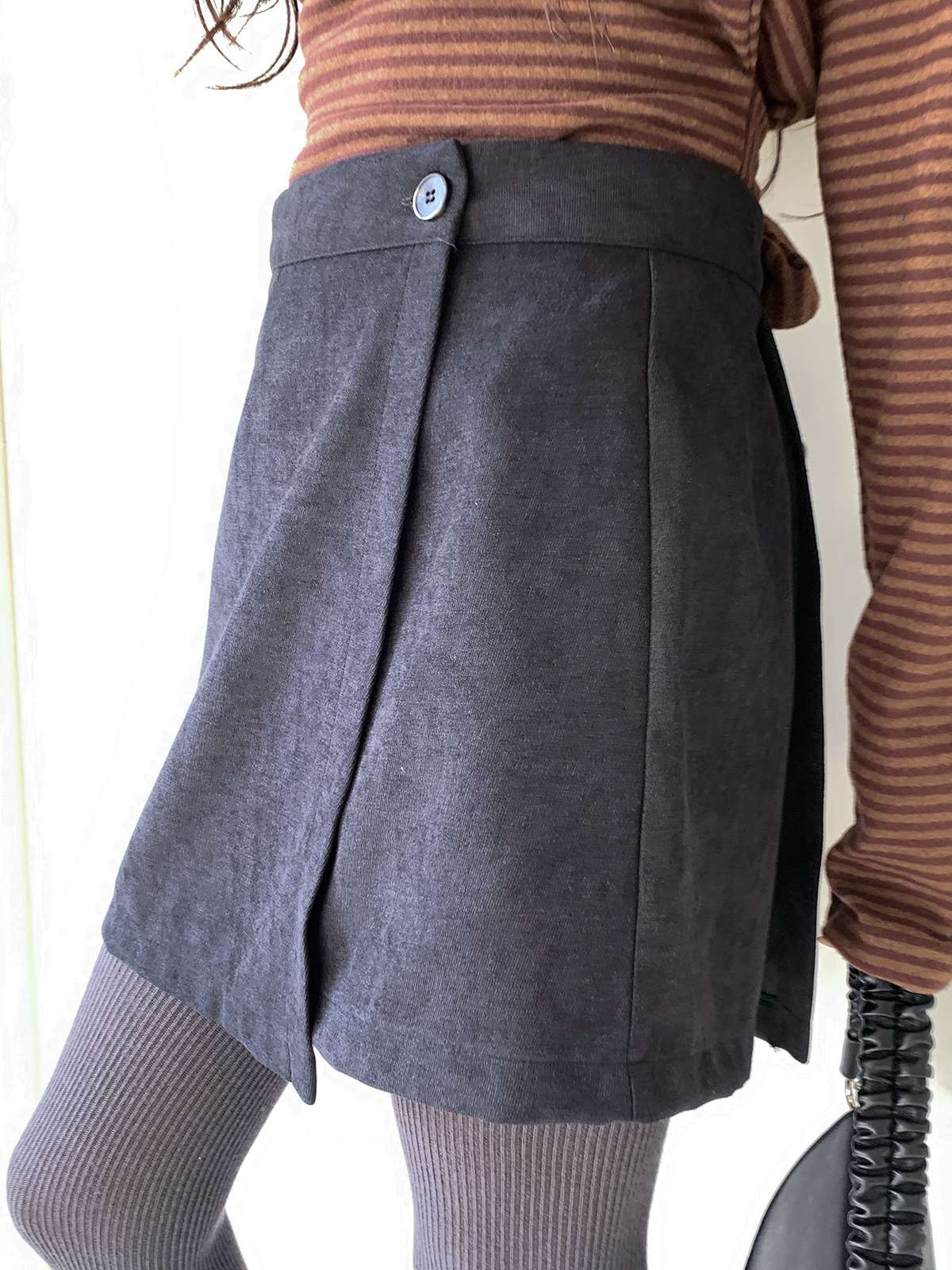 보들보들한 스웨이드 텍스처로 고급스러운 무드를 담은 치마바지입니다.