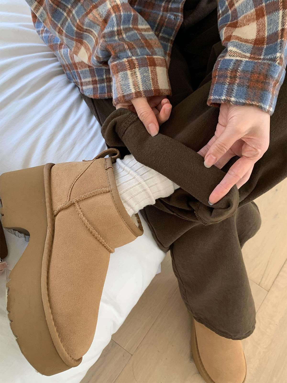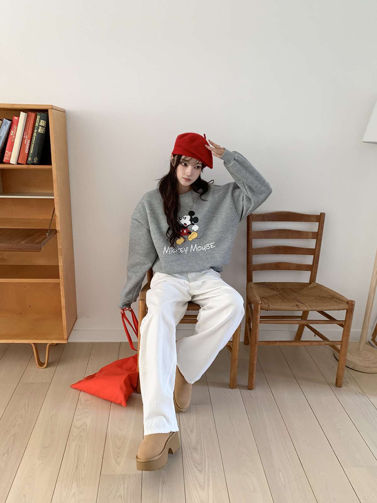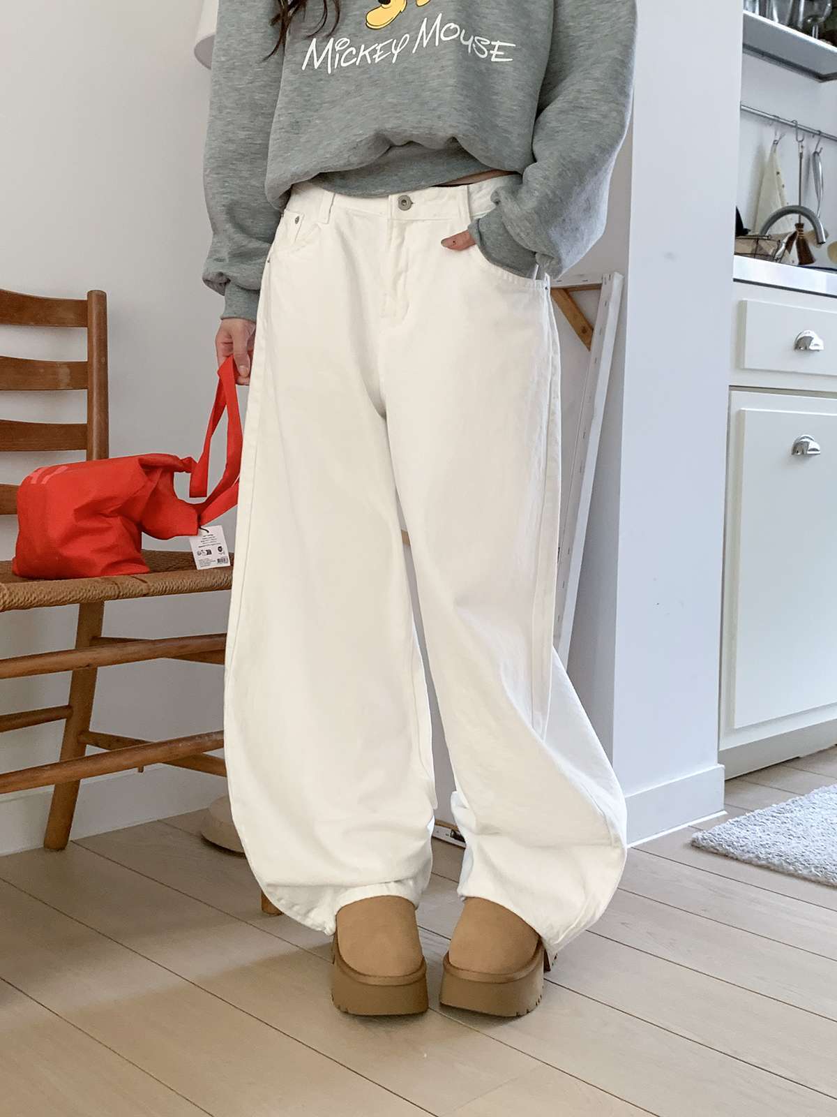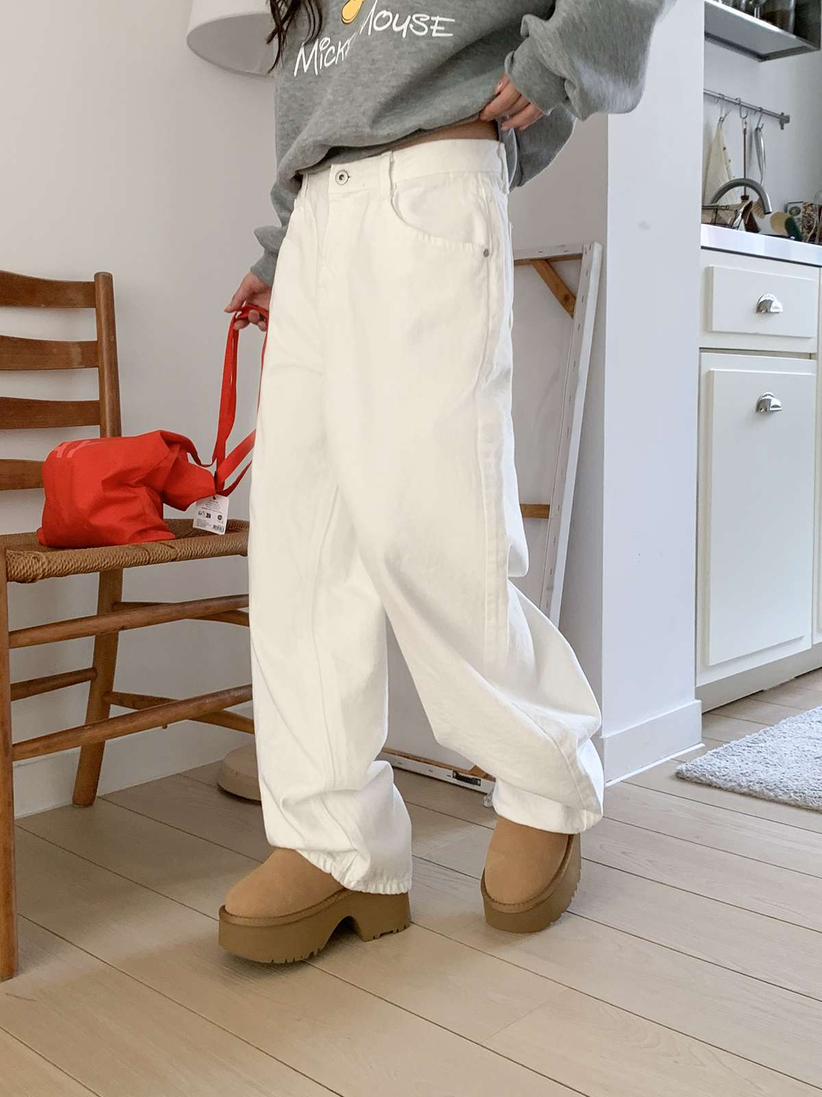 넉넉하게 떨어지는 와이드한 실루엣이 매력적인 피치 기모 코튼 팬츠