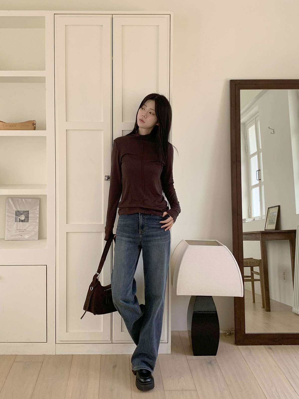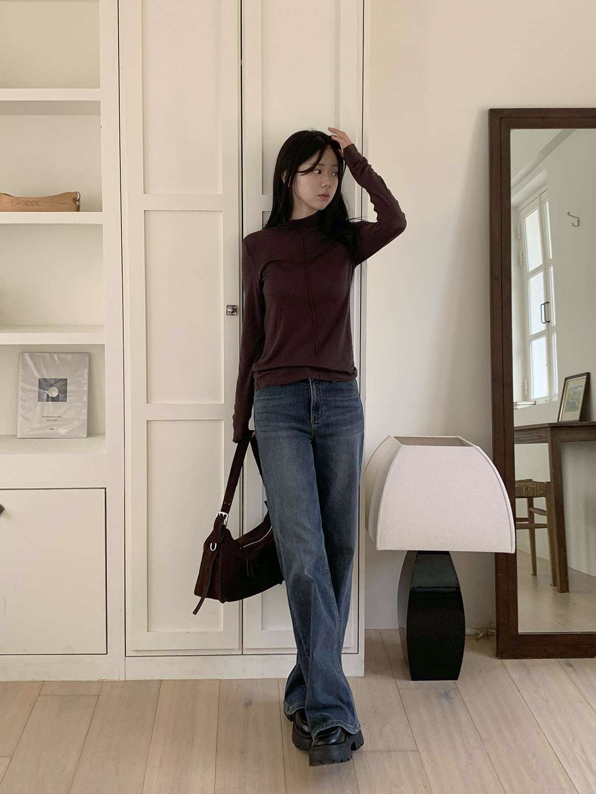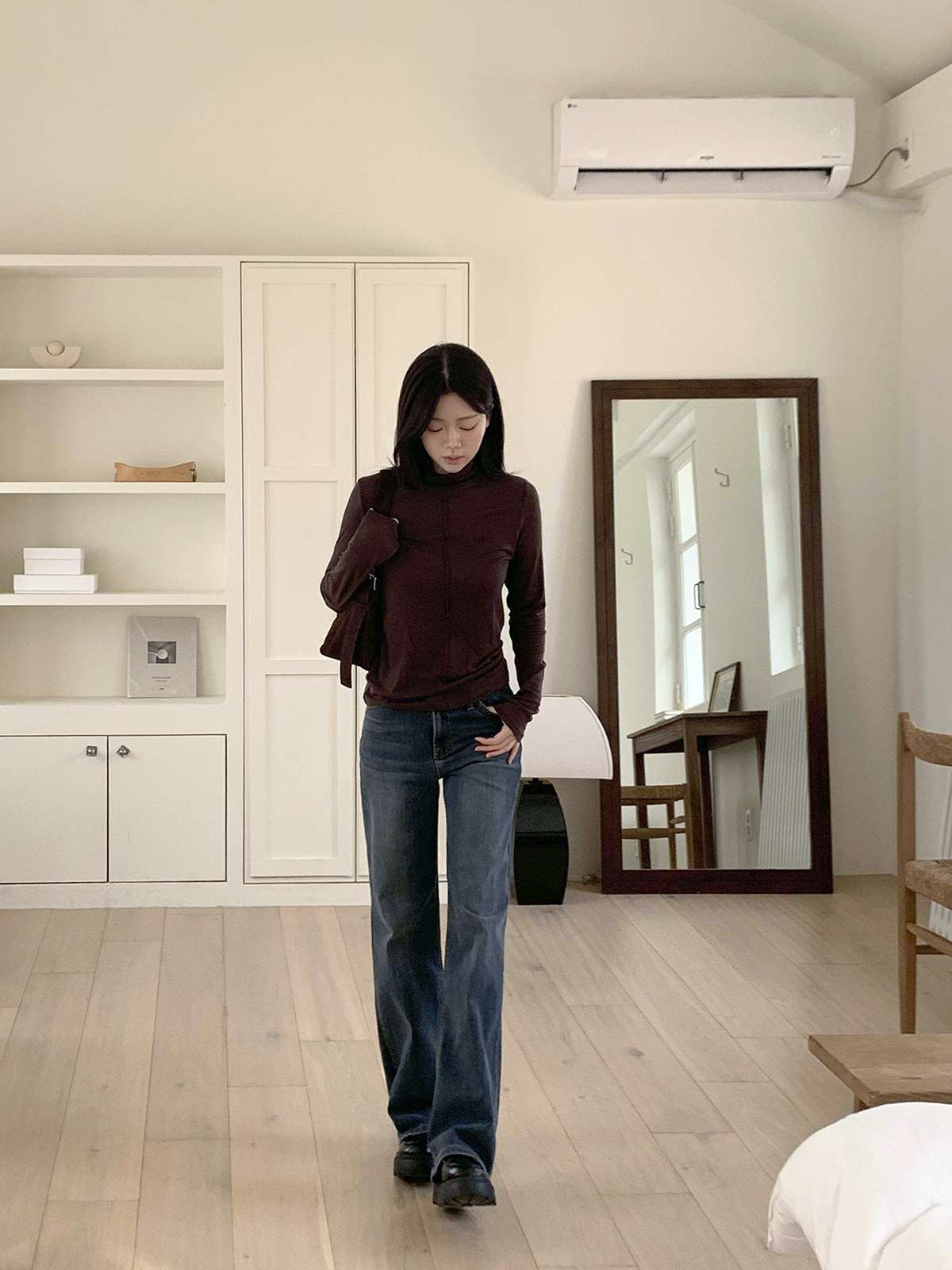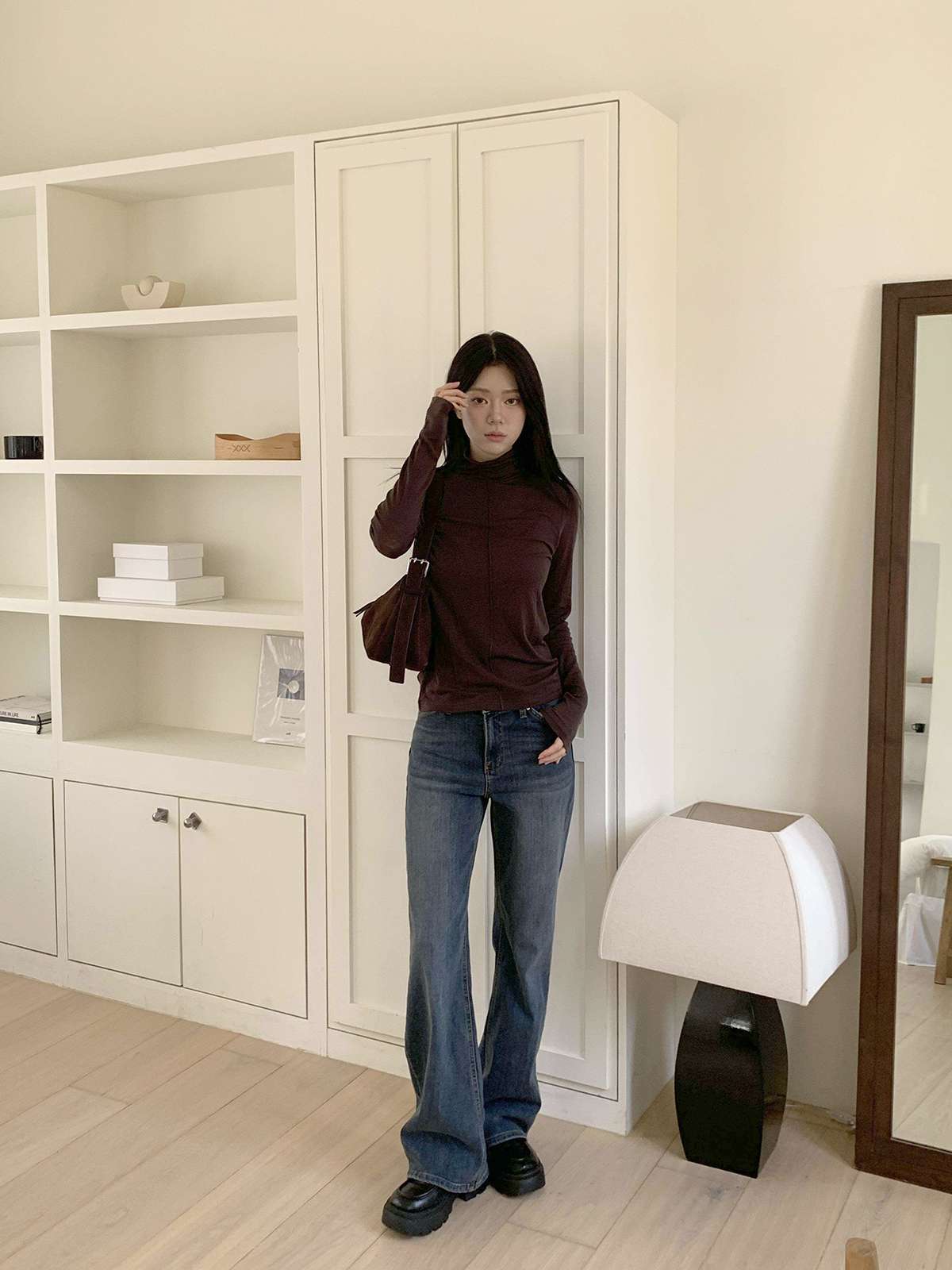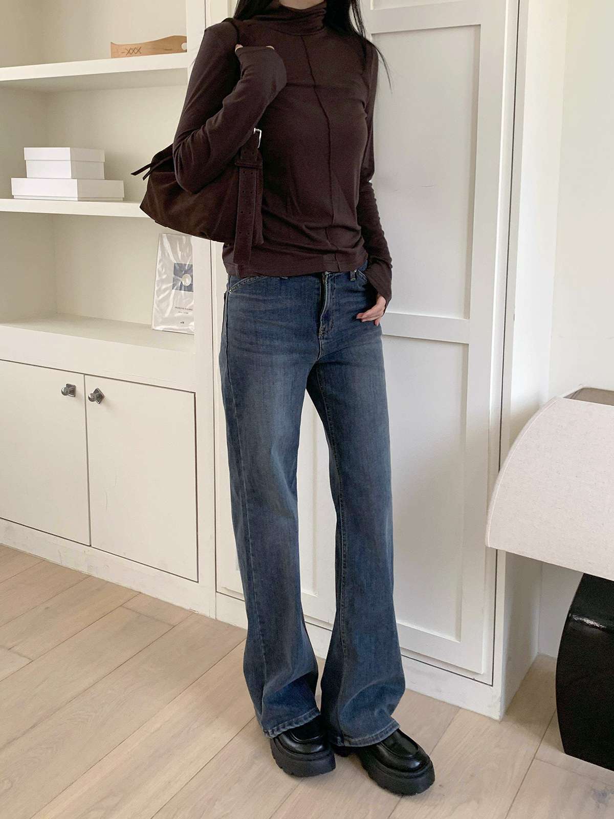 밑단으로 갈수록 살짝 퍼지는 부츠컷 실루엣이
