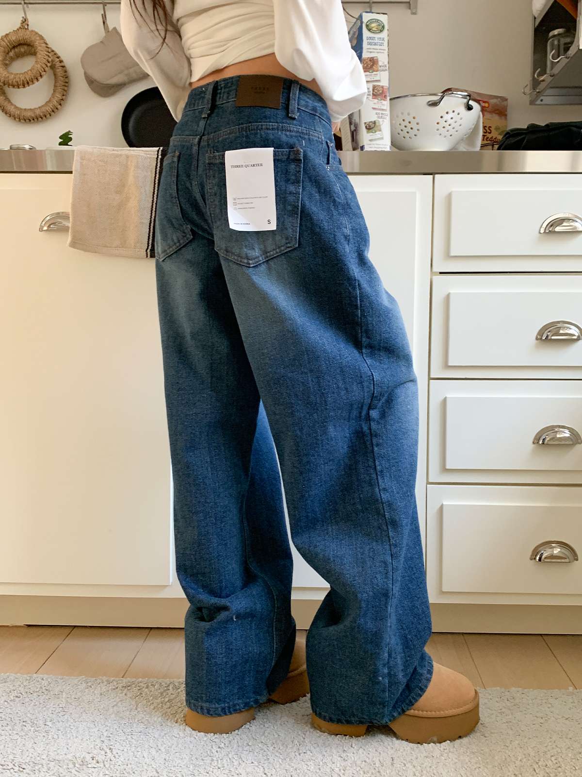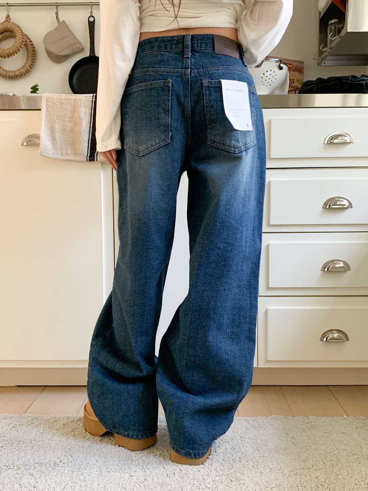 빈티지한 워싱이 멋스러운 딥 블루 컬러의 데님 팬츠