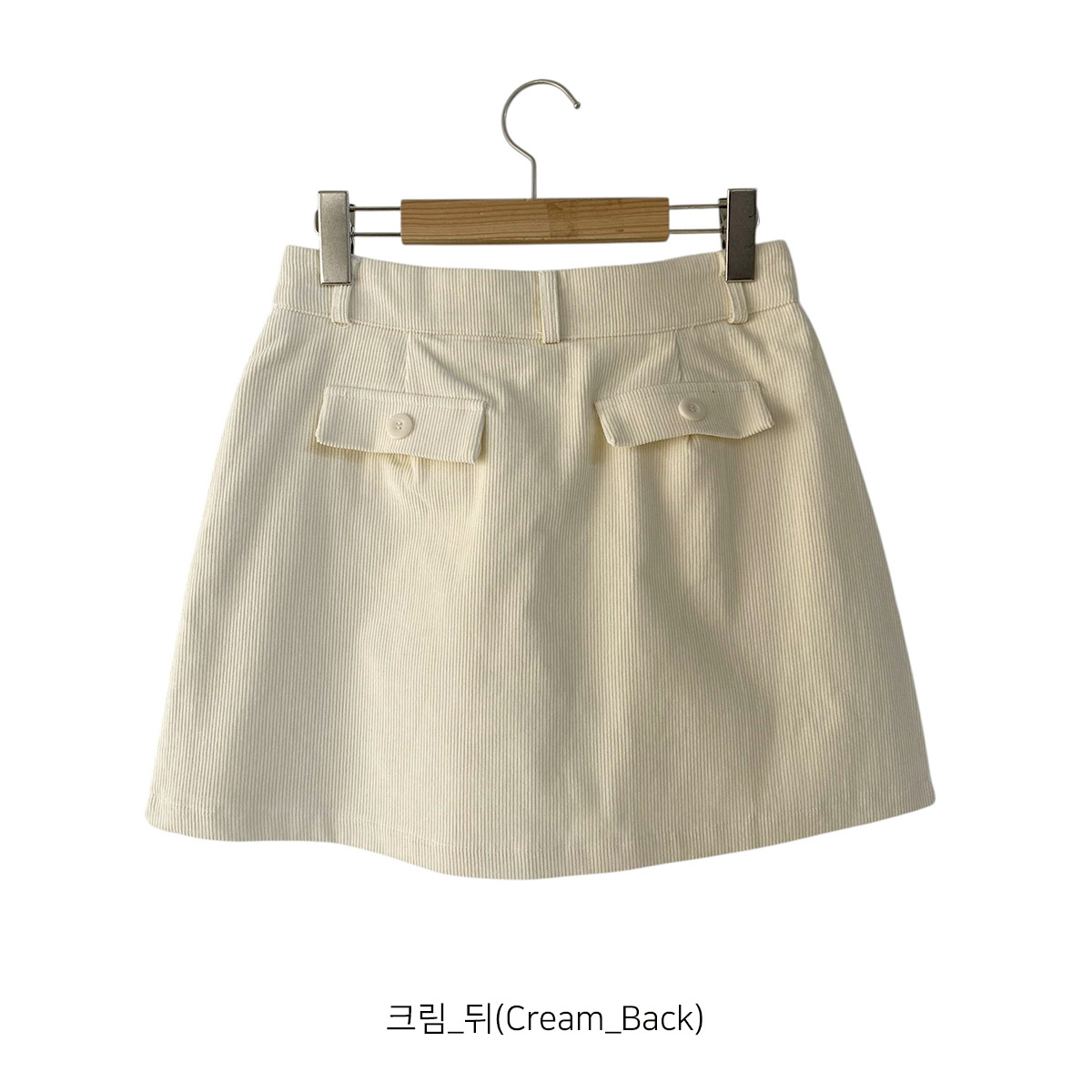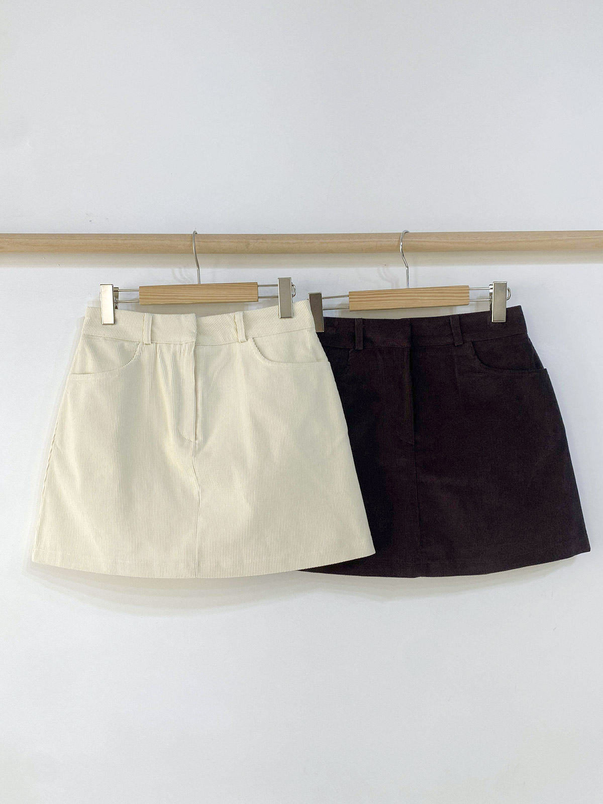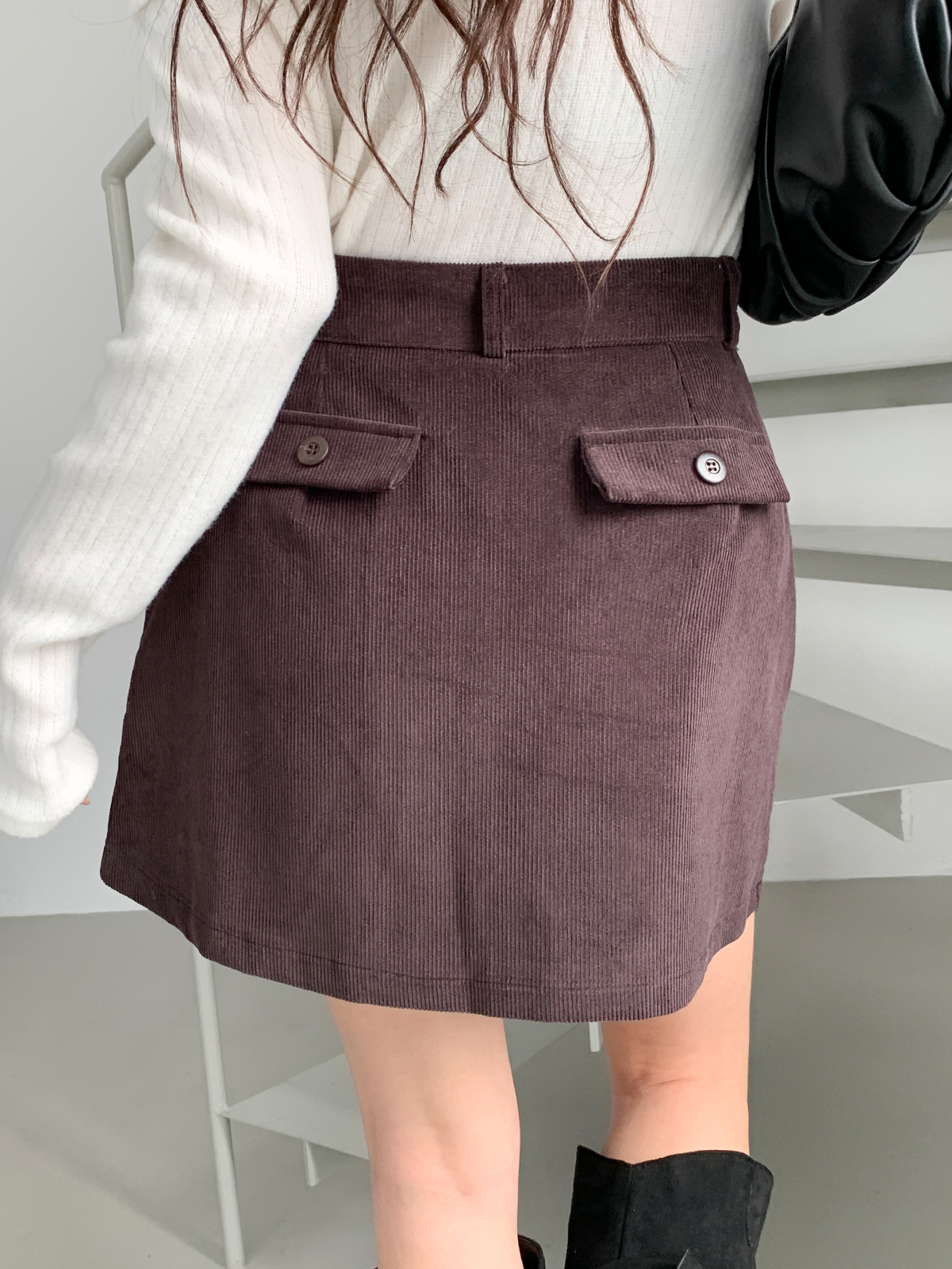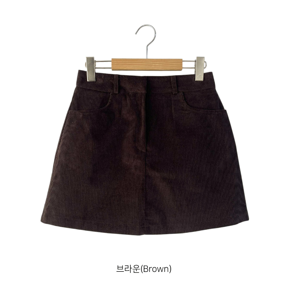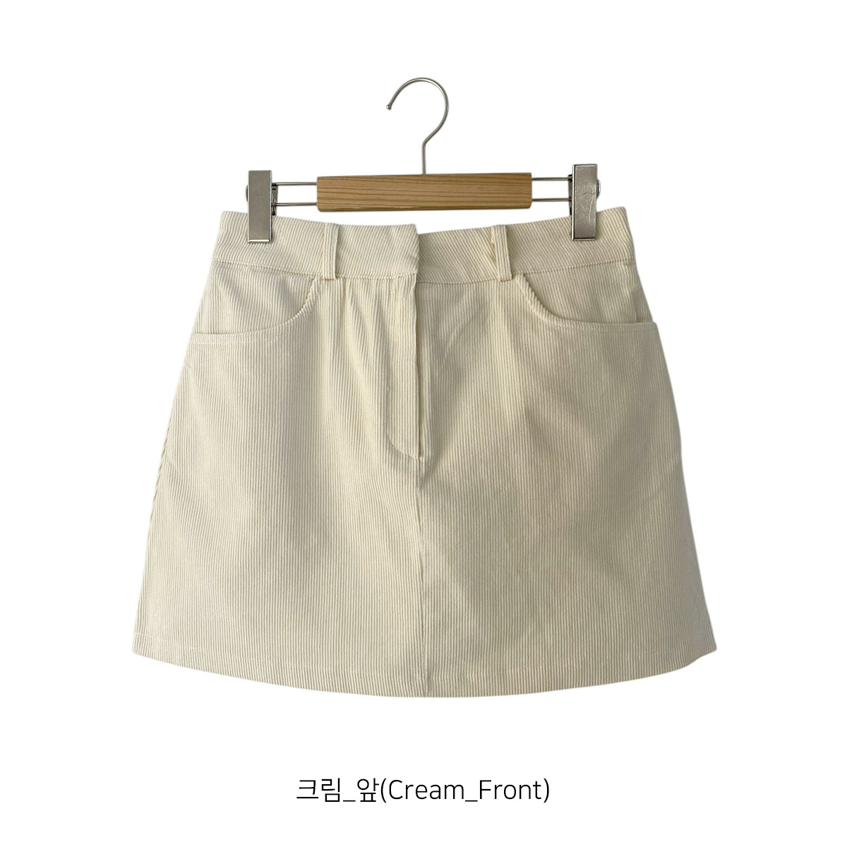 깔끔한 A라인 핏과 앞쪽의 포켓 디테일이 포인트인 코듀로이 치마바지