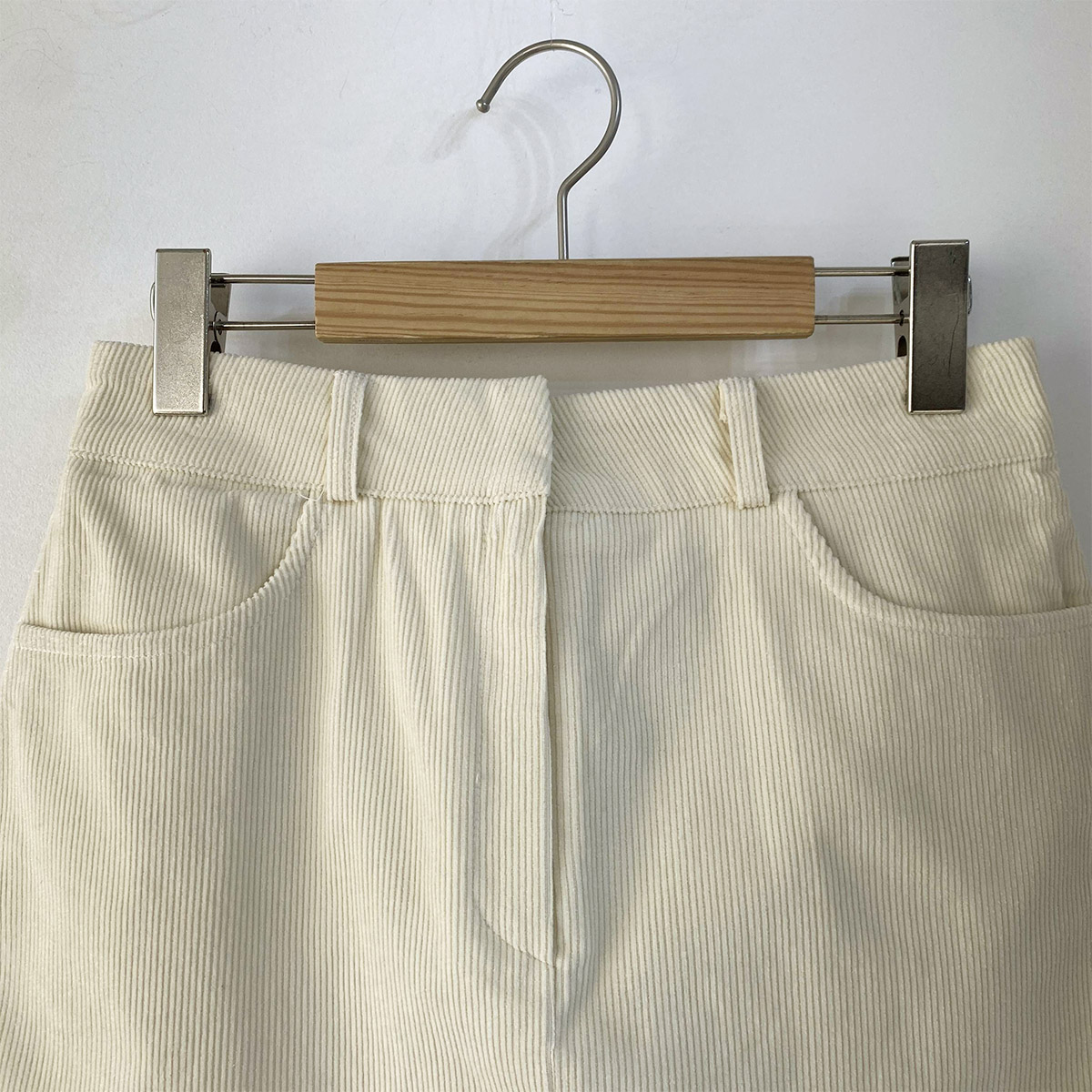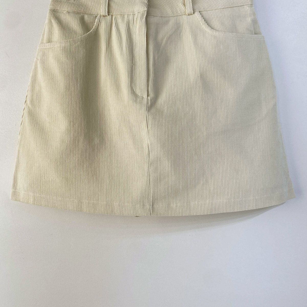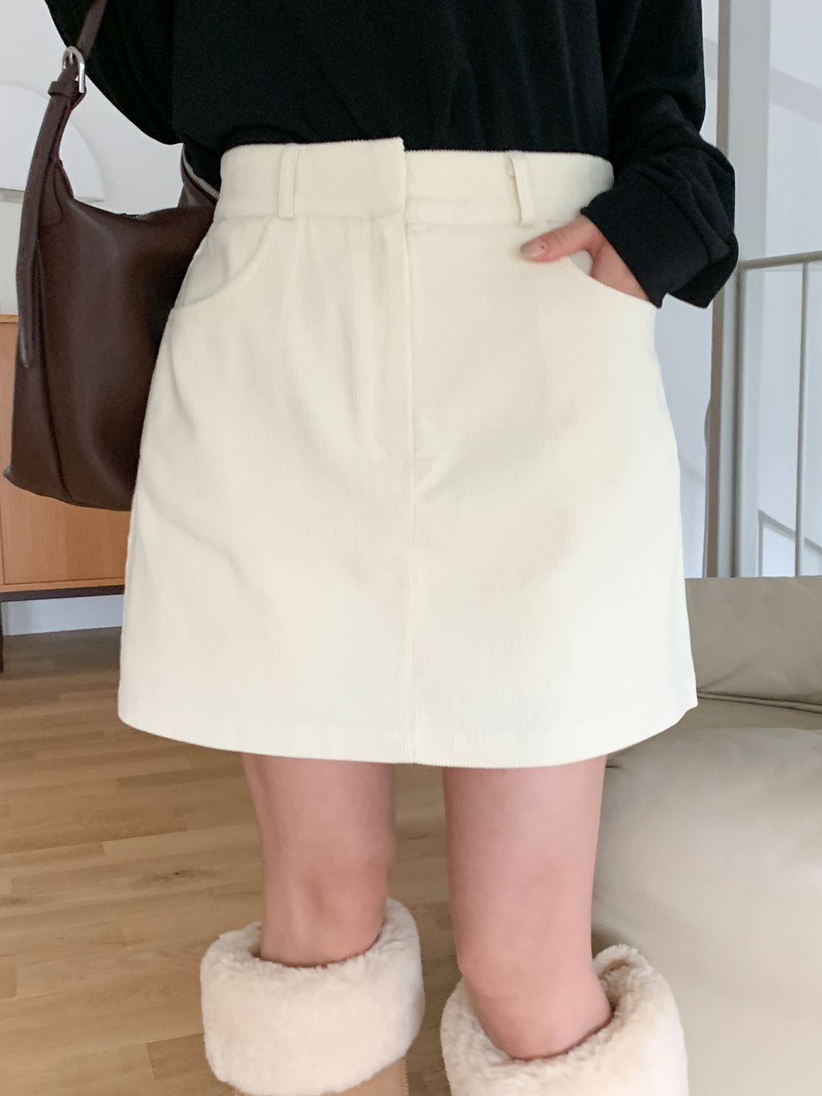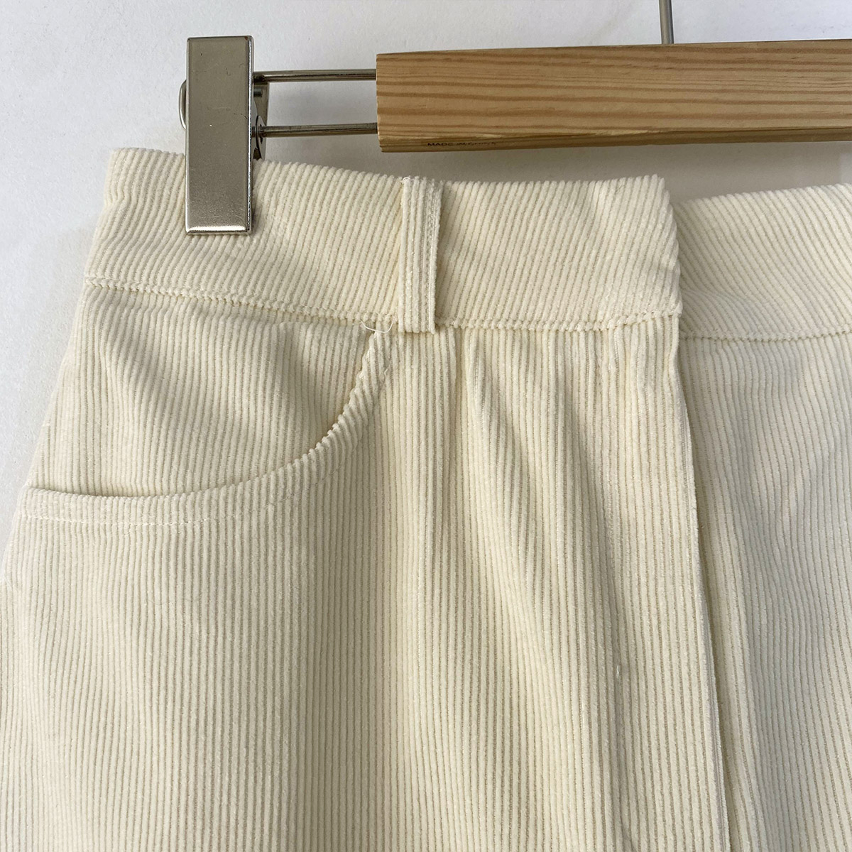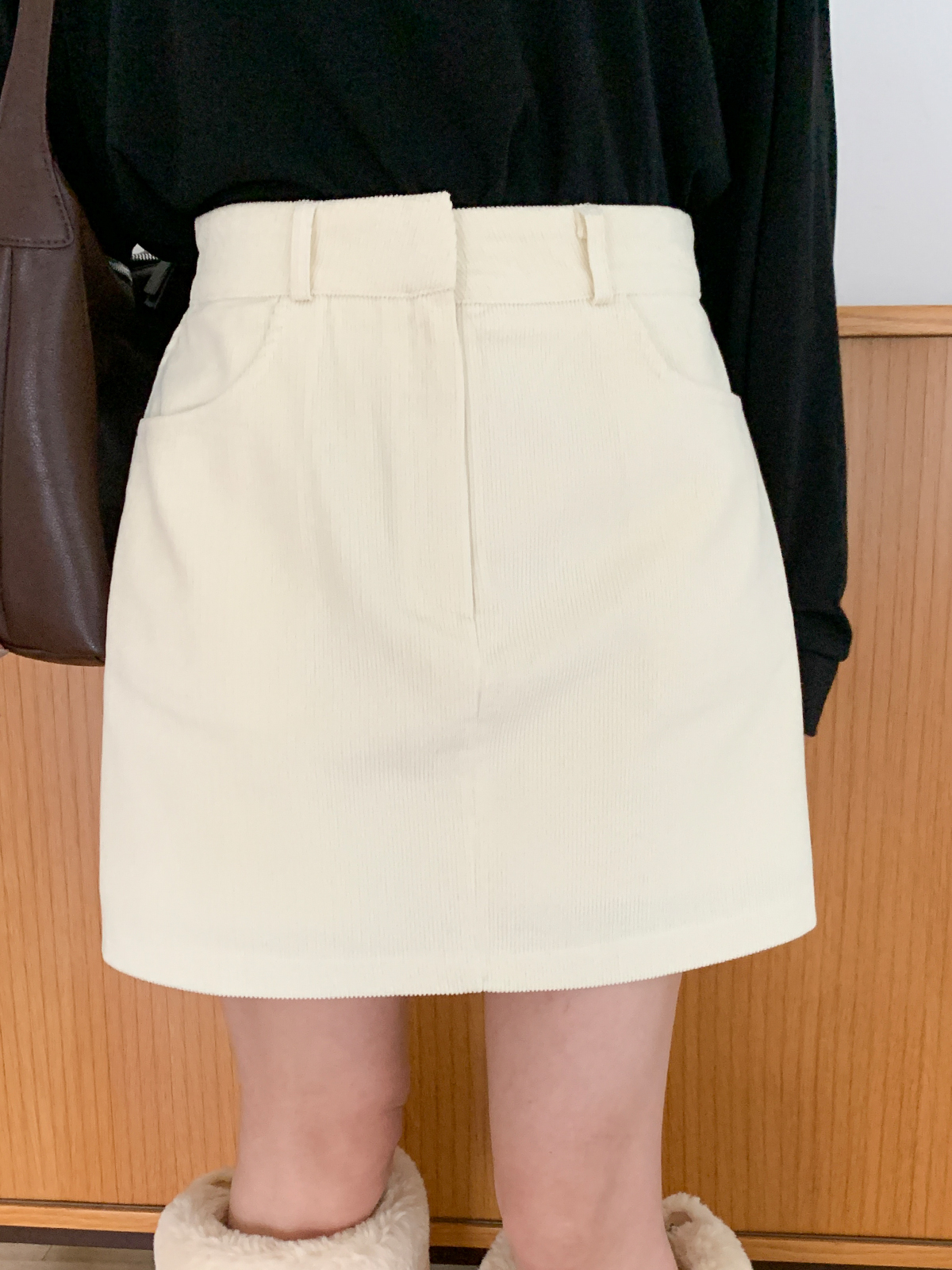 깔끔한 A라인 핏과 앞쪽의 포켓 디테일이 포인트인 코듀로이 치마바지