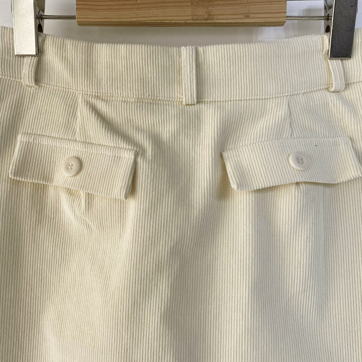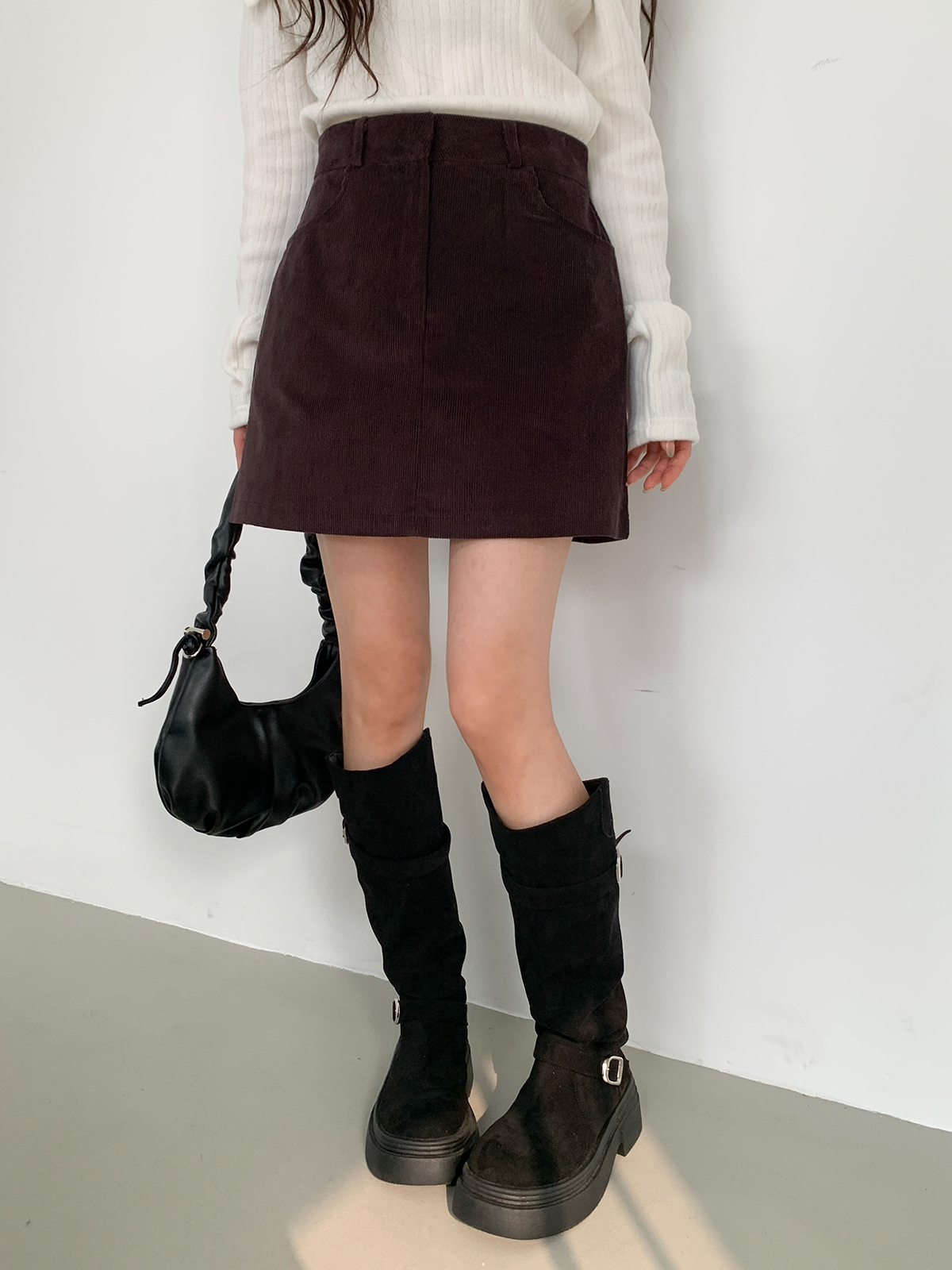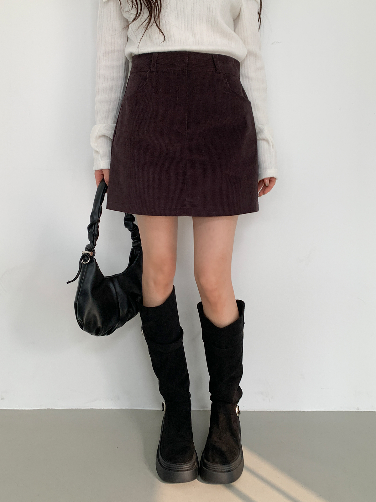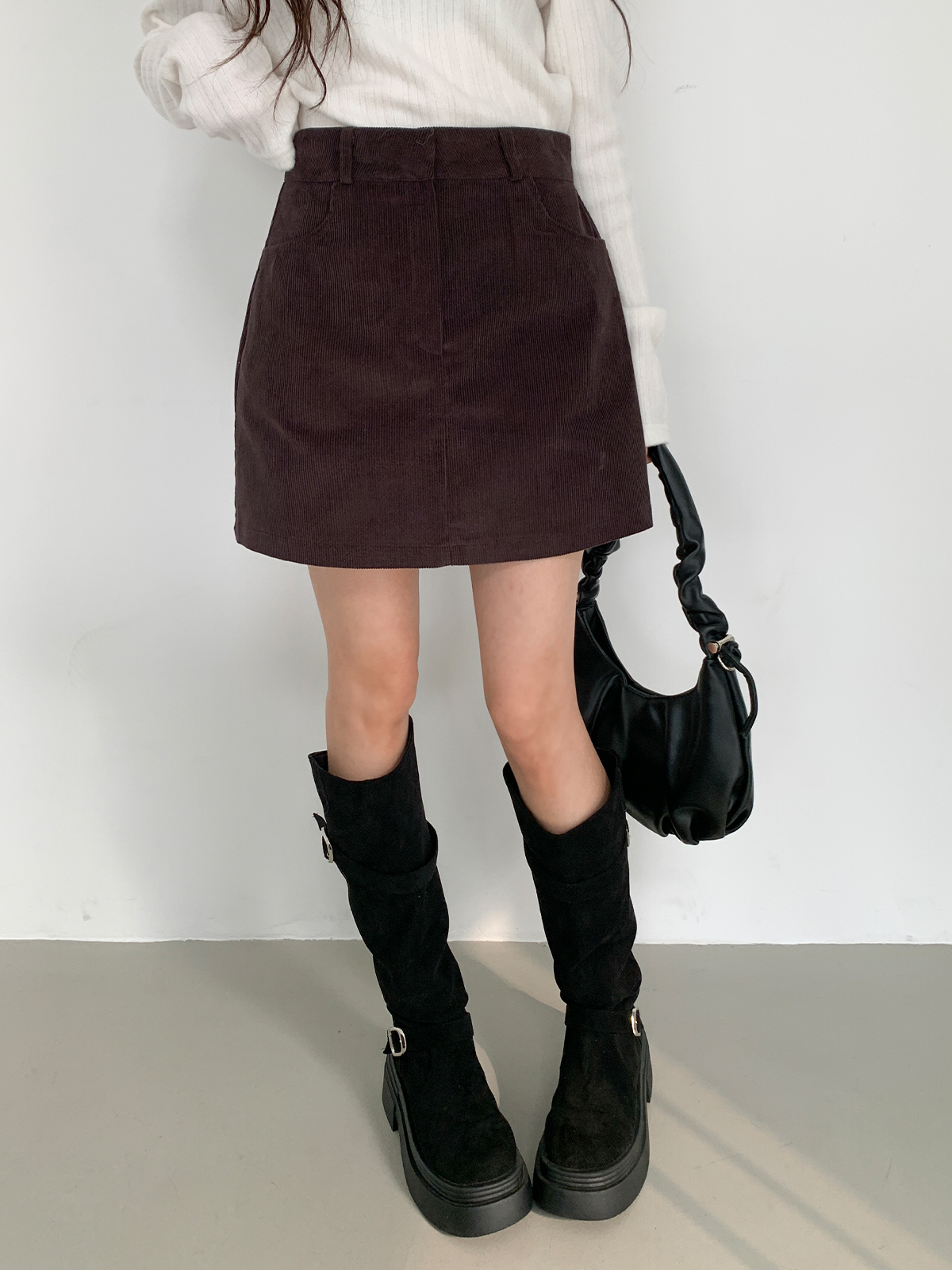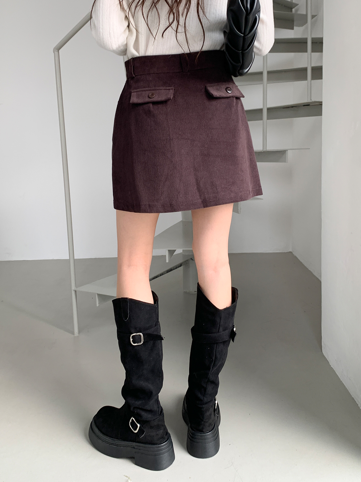 깔끔한 A라인 핏과 앞쪽의 포켓 디테일이 포인트인 코듀로이 치마바지