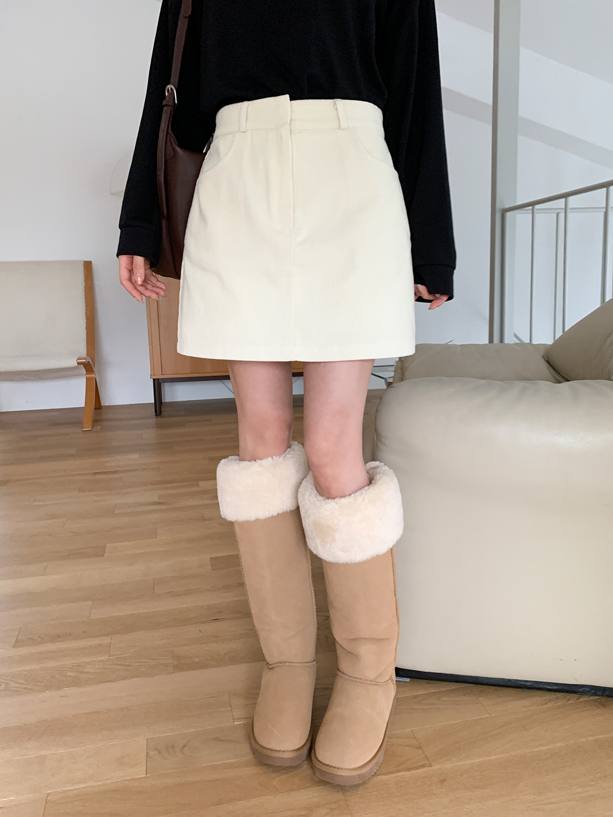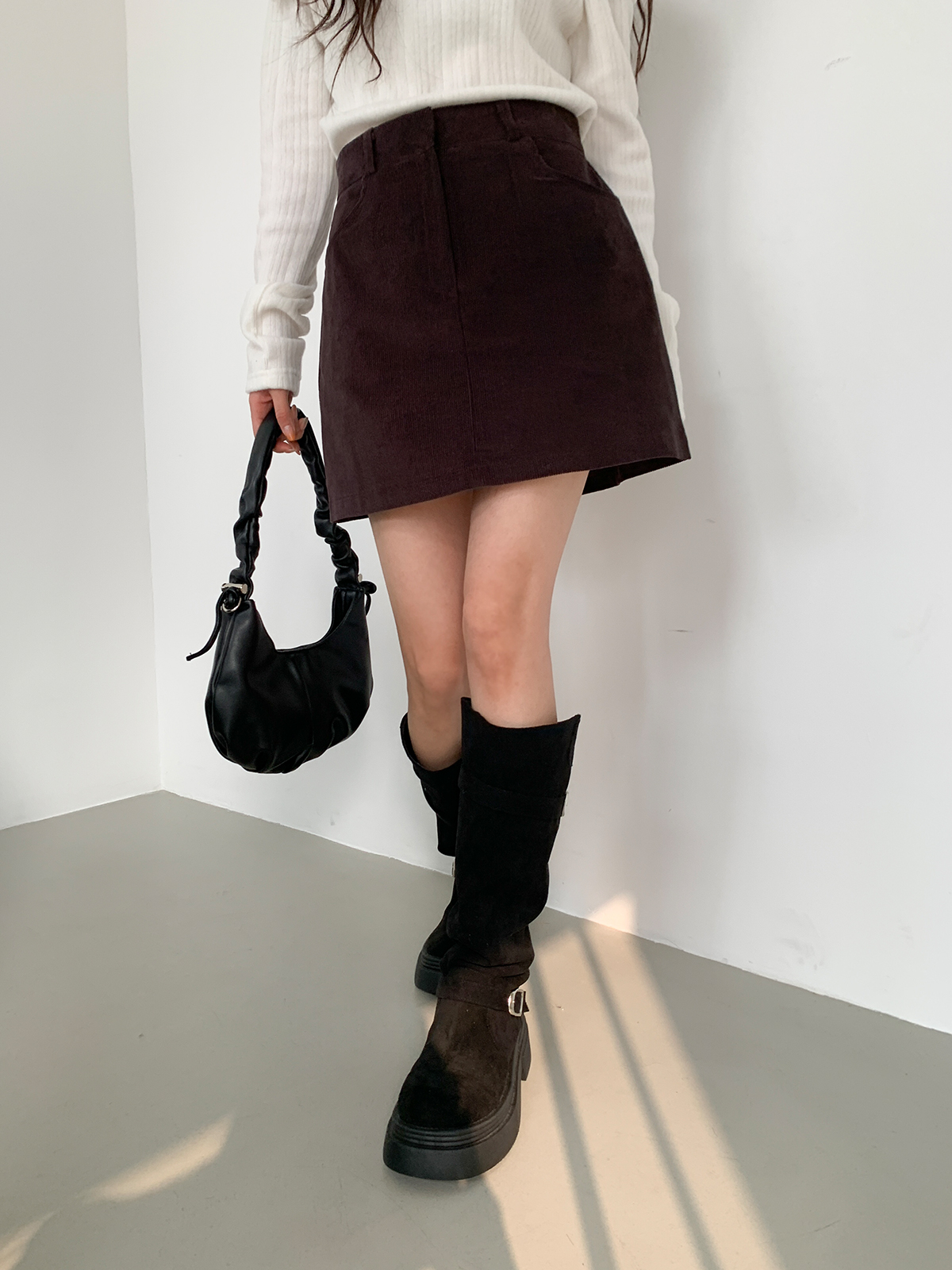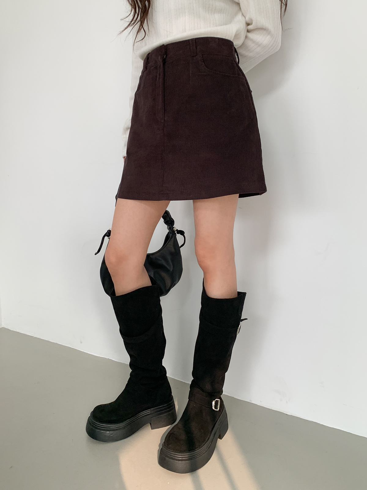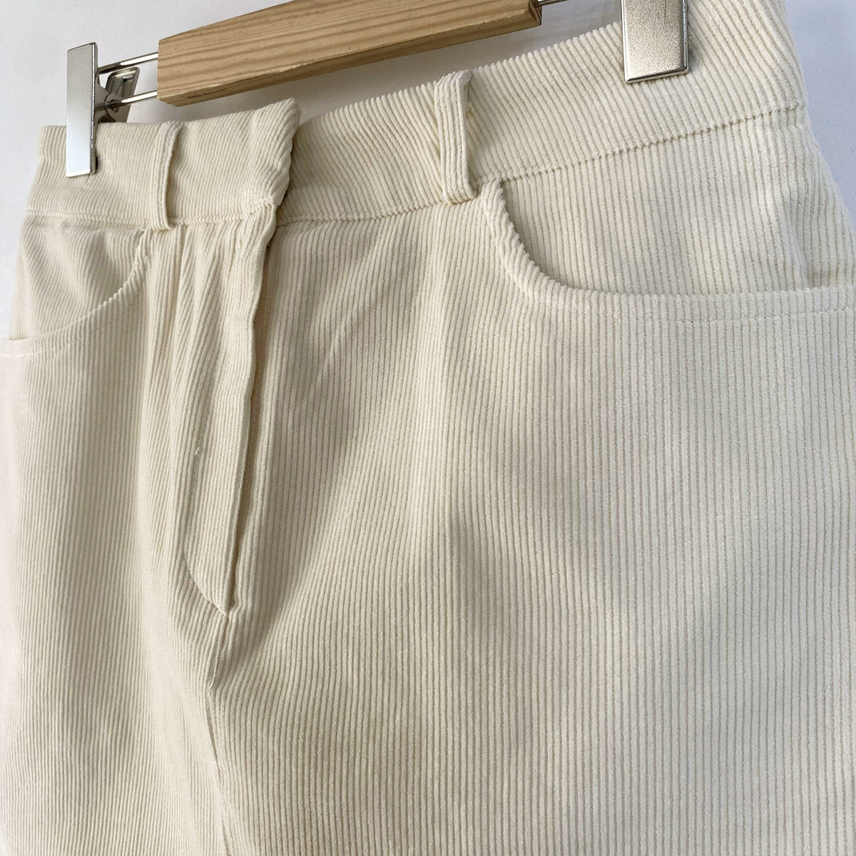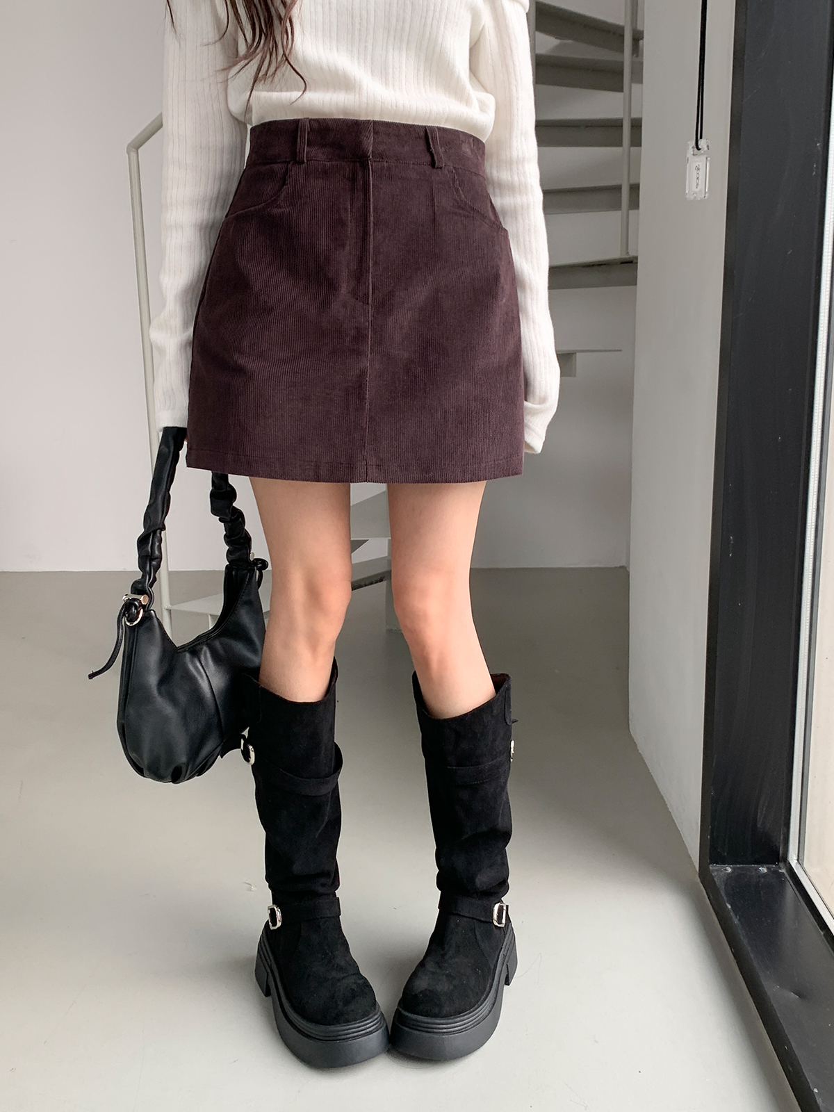 깔끔한 A라인 핏과 앞쪽의 포켓 디테일이 포인트인 코듀로이 치마바지